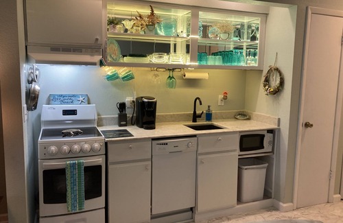 - Cuisine entièrement équipée avec cafetière Keurig, mijoteuse, hachoir à nourriture, couverts