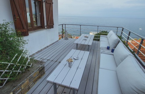 On the 1st floor you will find the living room with fireplace, kitchen (fully equipped with fridge, oven, kitchenware, etc.), one bedroom with one double bed, one bedroom with two single beds and the WC. Stepping out onto the balcony you will find out it overlooks the magnificent view of the Pagasitic Gulf, designed to comfortably accommodate 9-10 people.