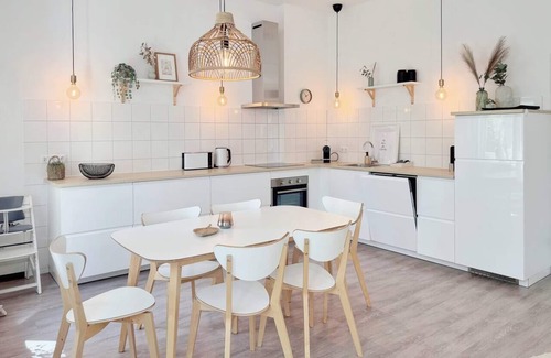 Modern, freshly renovated holiday apartment in the center of Neuwied – stylish, spacious, and fully equipped. Features a separate bedroom with a comfortable double bed and a living room with a comfortable double bed bed and a Sleeping Sofa – ideal for couples, business travelers, friends, or families. Enjoy full privacy with keycard access, private parking, and a quiet atmosphere. Shops, cafés, and local attractions are just a short walk away – perfect for a relaxed and convenient stay.