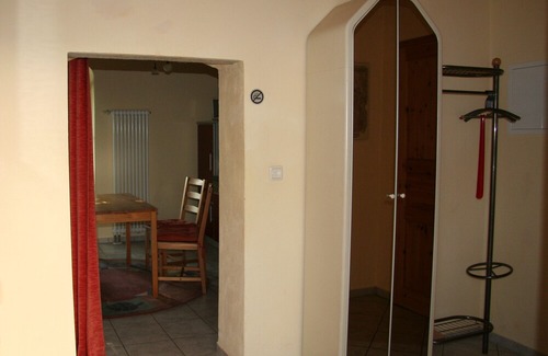 The apartment in Maxen is located on the ground floor of the half-timbered house with a direct connection to the garden. There is plenty of space for two people, a cot up to 3 years old. A spacious living and dining area with access to the 12 m² terrace, a bedroom with two single beds and a shower room with washing machine complete the offer.