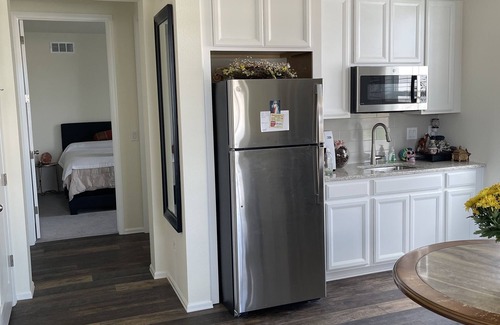 Beautiful 1 bedroom/1 bath recently built home with 3 outdoor pools. Great area for the family but also quite enough to relax. The neighborhod is save and very family friendly. There is a train that passes by the neighborhood about2x a day about 4 houses down. Super convenient to Oldtown (vibrant town) and I-25 for your commutes. Granite countertops. Very equipped kitchenette. Private yard; you will still have to go outside and around to use the yard.