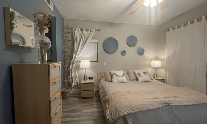 Cet appartement en copropriété avec 2 chambres et 2 salles de bain à Las Vegas est la solution parfaite pour explorer les environs en toute simplicité. Les amoureux de la nature et du grand air seront ravis de loger à 15 minutes en voiture de Site protégé Red Rock Canyon et à 11 minutes de Las Vegas Springs Preserve. Vous parcourrez aisément le trajet de 6 minutes en voiture jusqu'à Allegiant Stadium ou de 4 minutes jusqu'à Orleans Arena.
