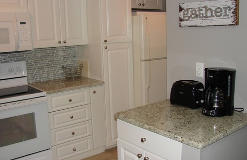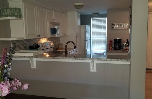 Nous avons complètement redécoré le condo en lui donnant un décor léger sur le thème de la plage. Vous saurez que vous êtes à la plage, mais vous vous sentirez toujours comme chez vous. Cela comprend la cuisine récemment rénovée, ouverte et efficace qui comprend de nouveaux gros appareils ménagers pour votre commodité. Les comptoirs en granit complètent votre sensation à la maison pendant que vous profitez du temps pour préparer des collations, des boissons ou des repas complets.