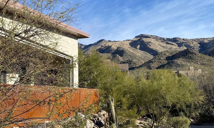 This entirely private 1000 sq. ft. guesthouse is brand new - constructed in 2022. 1 full bedroom additional room that could be office, guestroom or TV room. Spectacular mountain views allow for tranquil mountain sunrises and breathtaking sunsets. Walking distance from Ventana Canyon hiking trail and resort and only two miles from stunning Sabino Canyon - a walking, hiking, birding or cycling paradise. Our full kitchen and versatile working spaces will make your foothills stay a dream. Tucson's world renowned Mexican food is just down the street at El Charro Café, as are many other wonderful restaurants. Great shopping close by. Enjoy your own private house right next to one of Tucson's premier resorts. Walk in shower has grab bars for anyone with those needs. Back patio provides relaxing area with lounger and table for peaceful retreats.
