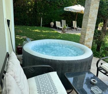 RestaurationBouteille d'eau, Plateau / bouilloire, Fruits, Chocolats ou biscuitsSalle de bainsShampoing, Savon, Salle de bains privative, Serviettes, Articles de toilette gratuits, Baignoire, Papier toilette, Sèche-cheveuxHigh-techRadio, Télévision, Télévision à écran platGénéralExtincteur, Chauffage, Climatisation, Détecteur de fuméeActivitésBain à remousCuisineMachine à café, Verres à vin, Réfrigérateur, Lave-vaisselle, Table à manger, Lave-linge, Four, Plaque de cuisson, Bouilloire électrique, Cuisine, KitchenetteEn extérieurEspace repas extérieur, Terrasse, Mobilier d’extérieur, Balcon, Patio, BarbecueVueVue sur le jardin, Vue sur la montagne, Vue, Vue sur la ville, Vue sur la mer, Vue sur une rue calmeCoin salonCoin repasChambreLinge de maison, Lits enfant/berceauxCaractéristiques du bâtimentIndépendantDivertissements et services aux famillesJeux de société / puzzles, Livres, DVD ou musique pour enfantsÉquipements en chambreOreiller sans plumes |