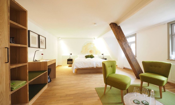 Das Dicke Eiche Zimmer ist eins unsere individuell und liebevoll eingerichteten Mottozimmer im historischen Altbau. Das Doppelzimmer verfügt über TV, freies W-Lan, eine Schreibmöglichkeit sowie Badezimmer mit Badewanne und WC. Babybetten oder Hochstühle stellen wir gerne kostenlos bereit.Eine Kaffee bzw. Teestation, sowie frisches Obst stellen wir unseren Gästen ebenfalls kostenfrei zur Verfügung. Frühstücksvariationen gegen Aufpreis Variante 1: Snacktüte - EUR 5,20 Abzuholen bei der gegenüberliegenden Bäckerei Schmid Variante 2: Frühstück „Leckerbissen“ - EUR 7,50 Ausgiebiges Frühstück bei unserem Kooperationspartner „Café Kult" im Nachbarort Dusslingen. Die jeweiligen Gutscheine können im Schwanen gebucht werden.