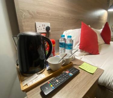 Salle de bainsArticles de toilette gratuits, Serviettes, Baignoire ou douche, Salle de bains privative, Après-shampoing, Savon, Toilettes, Papier toilette, Baignoire, Douche, ShampoingGénéralInsonorisation, Chauffage, Moquette, Détecteur de fuméeHigh-techTélévision à écran platCuisineBouilloire électriqueChambreArmoire ou penderie |