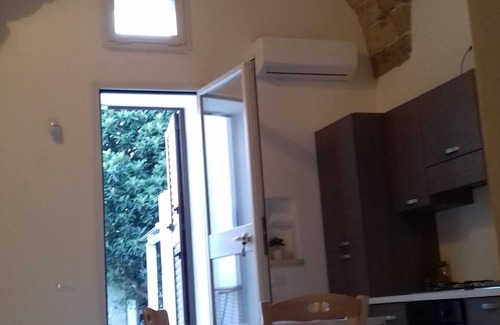 In Casarano, in the historic center, there is an ancient court composed of three independent apartments recently renovated with white walls and details in stone, typical of the houses of Salento. Each apartment consists of a large room with vaulted ceilings and a star, kitchenette, table and chairs, double bed, two single beds and a bathroom. Two apartments have access to the garden. The apartments are equipped with air conditioning, TV, wi-fi. On request they are intercommunicating, large free private parking. Services such as shops, tobaccos, newsagents, bars, pizzerias can be reached by taking a stroll in the historic center of Casarano. The location is ideal, 15 minutes from the first beaches (Gallipoli, the maldives of Salento, St. John's tower etc.).