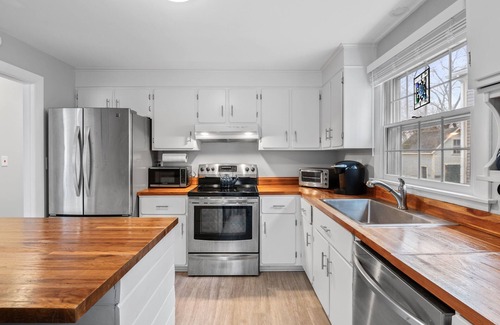 Pull up to this cozy Cape and park in your private off-street parking space. Step inside and be greeted by a great living room space, open concept with the dining room. The living room is complete with a Smart TV and seating for the whole family. Make your way into the full kitchen, with all the amenities and appliances you need for a home cooked meal. A dining room with a large table with space for 8 is located off of the kitchen. You can find 3 bedrooms on this level along with a freshly renovated full bathroom. The first bedroom has a king sized bed and a large closet with lots of storage space. The second bedroom has a queen sized bed with a cute hanging swing, and a closet for storage. The final bedroom on this floor has a full sized bunk bed, with a dresser for storage, perfect for any additional guests.