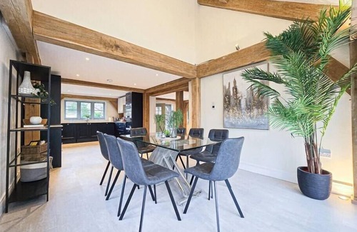 Our home is designed to impress with a spacious lounge, modern kitchen equipped with high-end appliances, and smart bathrooms. Each bedroom features comfortable beds and luxury furnishings, with fresh linen and towels provided to ensure a premium stay. The entrance hall opens to a versatile study/sitting area, leading to an expansive living room with a charming wood burner and stunning views through bi-folding doors to the garden.