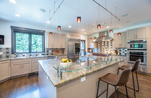 Cette location avec 5 chambres et 5 salles de bain compte également un salon, un canapé-lit, une cheminée et la climatisation. Parmi les équipements de salle de bains, vous trouverez un sèche-cheveux, des serviettes et du papier toilette. Préparez un bon petit plat maison dans la cuisine équipée de tout le nécessaire : un four, une plaque de cuisson et un réfrigérateur, mais aussi une cafetière, une bouilloire électrique et un distributeur de glaçons. Et vous pourrez même voyager un peu plus léger, car le logement est équipé d'une machine à laver et d'un sèche-linge.