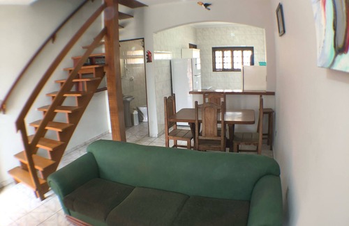 Maison de ville située à 300 m de la plage Martim de Sá, la meilleure plage de Caraguatatuba, avec 2 chambres à coucher, 2 WC, salon, cuisine, zone de service et meublée. Il a tous les éléments de base: réfrigérateur, cuisinière, vaisselle, couverts, casseroles, etc. Peut accueillir confortablement huit personnes. La propriété possède une piscine à usage collectif, un barbecue, un garage pour un véhicule de taille moyenne et des jardins.