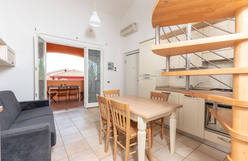Apt 3 pièces 60 m2 sur 2 niveaux au 1er étage. Logement idéal pour 4 adultes + 2 enfants. Spacieux, aménagement plaisant: à l'étage supérieur: séjour/salle à manger avec 1 divan-lit double, table pour les repas, coin-cuisine et TV. Sortie sur la terrasse. 1 chambre avec 1 lit et 1 lit double. Cuisine ouverte (four, 4 feux). Sortie sur la terrasse. Douche/WC. 2ème étage: (escalier en colimaçon) galerie ouverte avec 1 lit double. Air-conditionné, chauffage à air chaud. Terrasse 9 m2, couverte. Meubles de terrasse. A disposition: lit bébé jusqu'à 2 ans, sèche-cheveux. Internet (Connexion WIFI, gratuit). Place de parking. Veuillez noter: logement non-fumeur. 1 animal/ chien autorisé. IT053024A1U9LOE9RJ