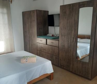 Offrant une vue sur la mer, l’hébergement Albert residence possède une terrasse, un restaurant et un bar, à environ 2 km de ce lieu d’intérêt : Plage de Graviers. Doté d’un parking privé gratuit, cet hébergement est installé à respectivement 15 km et 2,2 km de : Francois Leguat Reserve et Jardin des Cinq Sens. Ce chalet comporte 1 chambre, une télévision à écran plat, ainsi qu’une cuisine entièrement équipée avec un four, une plaque de cuisson, un lave-linge et un grille-pain. Si vous souhaitez découvrir la région, vous aurez la possibilité de pratiquer la randonnée dans les environs. Un service de location de voitures est assuré sur place. Vous séjournerez à respectivement 7,5 km et 11 km de ces lieux d’intérêt : Saint Gabriel Church et Caverne Patate. L’établissement se situe à 19 km de l’aéroport le plus proche (Aéroport Sir Gaëtan Duval de Plaine Corail) et propose un service de navette aéroport payant.