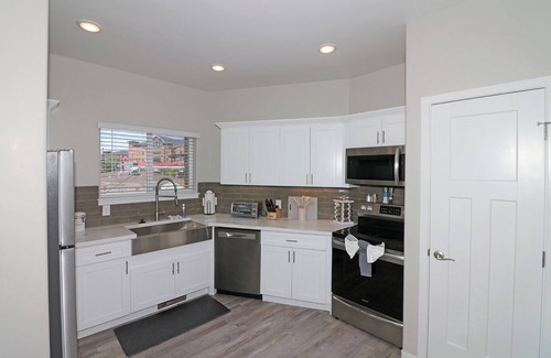 Welcome to this modern 3-story townhome in the heart of Grand Junction, just minutes from Colorado Mesa University and Suplizio Stadium. Designed with both comfort and simplicity in mind, this allergy-friendly home features two cozy bedrooms with queen beds on the top floor, a bright and inviting living space with a fully equipped kitchen on the second level, and a private garage on the ground floor for secure parking and easy access. With clean lines, thoughtful amenities, and a pet-free, smoke-free environment, it's the perfect retreat for travelers seeking a fresh, peaceful stay near the best of downtown, campus life, and outdoor adventure.