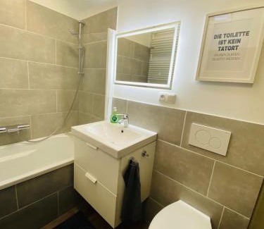 Proposant une terrasse, l’hébergement Alte Scheune se situe à Werneck, à respectivement 34 km, 34 km et 34 km de ces lieux d’intérêt : Gare centrale de Wurtzbourg, Palais des congrès de Wurtzbourg et Cathédrale Saint-Kilian de Wurtzbourg. Un restaurant, un parking privé gratuit et une connexion Wi-Fi gratuite sont disponibles sur place. Cet appartement compte 1 chambre, une kitchenette avec un réfrigérateur et un lave-vaisselle, une télévision à écran plat, un coin salon, ainsi que 1 salle de bains comportant une baignoire. Des serviettes et du linge de lit sont à disposition. Un service de location de vélos est disponible sur place. Vous séjournerez à respectivement 35 km et 35 km de ces lieux d’intérêt : Résidence de Wurtzbourg avec les jardins de la Cour et Alte Mainbrücke. L'aéroport le plus proche (Aéroport de Nuremberg) est à 126 km.