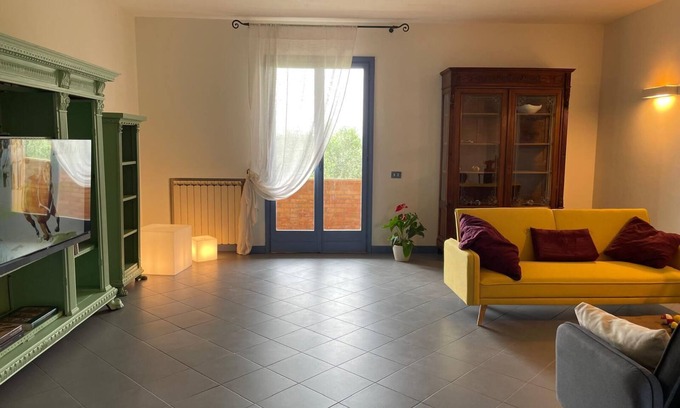 Discover Lo Scosso, a newly renovated apartment just 5 minutes from the center of Siena. Located on the first floor with a private entrance, it features a spacious living room with panoramic terrace, dining area, and a fully equipped kitchen (including water purifier, espresso machine, moka, kettle, microwave, and toaster). Enjoy fast Wi-Fi, smart TV, and air conditioning in every room. Perfect for families or groups, Lo Scosso offers 3 king-size bedrooms (convertible into twin beds on request, with extra fee) and 2 bathrooms with shower and bidet. The private garden is ideal for relaxing outdoors. The apartment welcomes you with bright, spacious interiors and attention to detail for a peaceful and comfortable stay. Eco-friendly property with solar panels. Private parking for up to 4 cars. Pets allowed with an extra fee. Please specify your preferred bed configuration when booking for a personalized experience.
