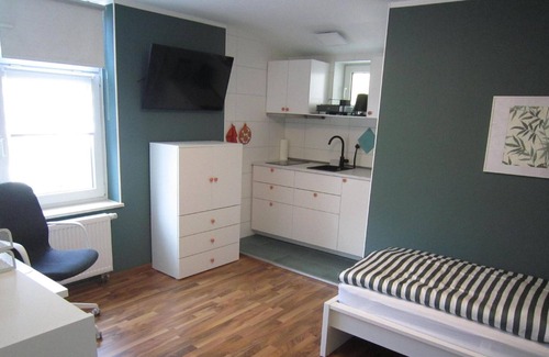Apartamento de vacaciones Rostock para 1 persona con 1 dormitorio - Apartamento en casa unifamiliar is located in Gartenstadt-Stadtweide. Apartamento de vacaciones Rostock para 1 persona con 1 dormitorio - Apartamento en casa unifamiliar provides accommodation, featuring Sécurité sureté, Adapté aux enfants, Cuisine, among other amenities. This Appartement features Sécurité sureté, Adapté aux enfants, Cuisine, to make your stay a comfortable one.