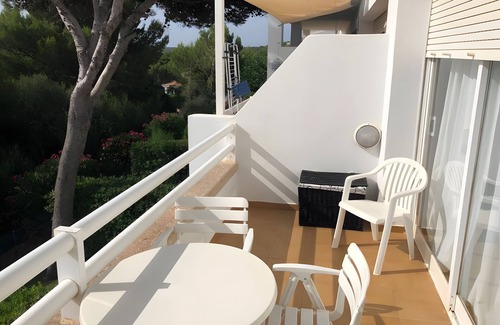 The apartment is located near the Coves Noves area, which features a supermarket with a children’s playground, along with nearby restaurants and shops. Arenal d'en Castell beach and Na Macaret beach are within walking distance, as is the Port of Addaia.
