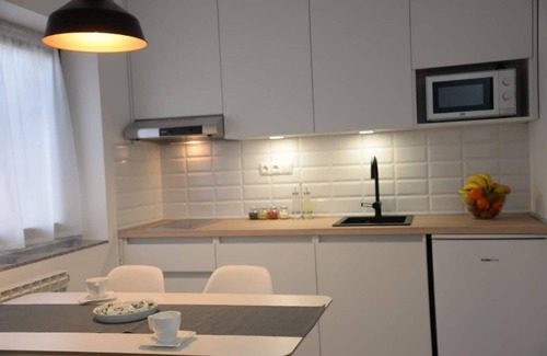 Apartment of 45 m2 consists of a hallway, bathroom with shower, separate toilet, living room with kitchen and bedroom. It is equipped with a central heating system in all rooms and air conditioning. It also has Flat Screen TV with satellite receiver.