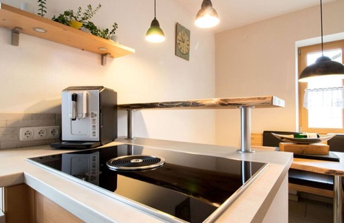 Our bright as well as tastefully equipped apartment (95 m²) offers you all the amenities. Completely equipped kitchen including counter and corner bench. A wood stove such as exclusive Siemens devices (oven, microwave, heat drawer, fully automatic coffee machine, dishwasher, etc.), induction stove with bora trigger field and other devices are your useful helpers. The bathroom presents itself with a separate shower, bathtub, sink, toilet, cosmetic mirror, hair dryer. The living room (55 "TV with PS4 station, stereo system, JPL Soundbar), both bedrooms (1st SZ with box spring bed 200x200 and 2nd SZ with two separate box spring beds 100x200) offer a wonderful view of the alpine frames.