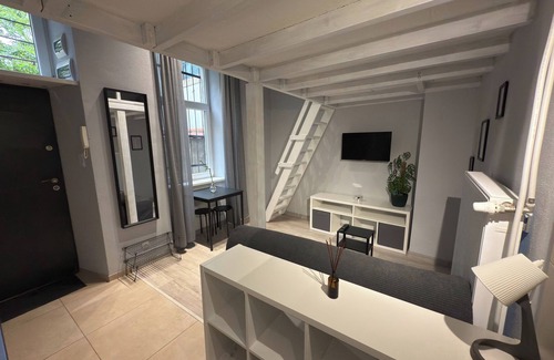 Apartment with Mezzanine and Private Courtyard is located in Stradom. Apartment with Mezzanine and Private Courtyard provides accommodation, featuring Sécurité sureté, Activités sportives, Literie/Linge de maison, among other amenities. This Appartement features Sécurité sureté, Activités sportives, Literie/Linge de maison, to make your stay a comfortable one.