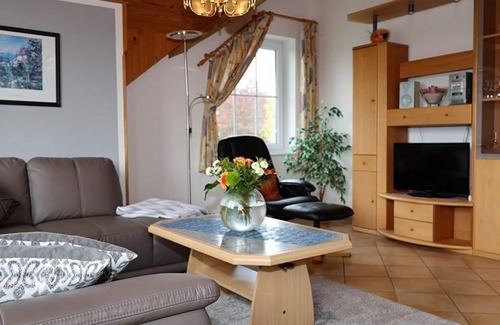 Profitez de vos vacances dans notre appartement bien équipé et lumineux. L'appartement de 80 m² avec balcon peut accueillir 4 personnes. Il propose un salon ouvert avec coin salon, coin repas avec canapé et kitchenette. Micro-ondes, bouilloire, cafetière, batterie de cuisine; Porcelaine et couverts dans la cuisine Deux chambres doubles, une salle de bains spacieuse avec cabine de douche, baignoire, toilettes, urinoir, évier et lave-linge dans la salle de bains. Le linge de lit, les serviettes et les torchons de cuisine sont fournis. L'électricité, l'eau et le chauffage sont facturés en fonction de la consommation. En outre, vous disposez de mobilier de jardin, pelouse, aire de jeux pour enfants et barbecue. Jardin à usage partagé.
