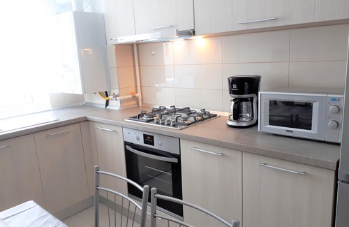 Bel appartement dans un nouveau quartier résidentiel, près du centre historique de Brasov. Cet appartement comprend une chambre double, une cuisine complète avec tous les accessoires, un grand salon avec un canapé-lit double et un balcon avec vue sur les montagnes, un hall avec des rangements pour les bagages et les lave-linge et une salle de bains avec baignoire. Place de parking privée. Le quartier a des supermarchés, des transports publics, une surveillance privée 24h / 24, de nombreux espaces verts et une grande aire de jeux pour les enfants