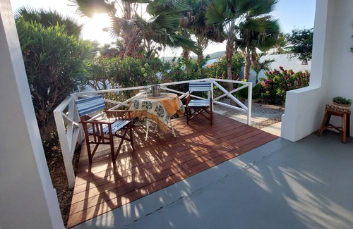 Profitez de la terrasse du jardin bordée de palmiers. Il y a un barbecue disponible, donc c'est génial d'allumer le barbecue dans le soir en dégustant un Balashi ou un verre de vin.