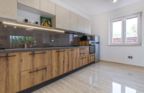 Bienvenue dans ce bel appartement au rez-de-chaussée. Venez avec votre famille nombreuse et vous vous sentirez directement comme chez vous. Ici, vous pouvez vous reposer et laisser derrière vous votre quotidien trépidant. L'équipement confortable répond à tous vos souhaits et vous invite à passer des moments conviviaux dans les pièces communes en cuisinant, en vous prélassant et en jouant. Mais profitez aussi de la belle terrasse et du jardin. Vous y trouverez une piscine rafraîchissante dans laquelle vous pourrez passer de nombreuses heures à vous baigner ou à préparer vos plats préférés sur le barbecue maçonné le soir. Profitez du temps passé dans le jardin avec une vue magnifique sur la baie de Koper.
