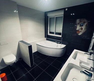Situated in Charleville-Mézières, Appartement de Luxe à Côté du Théâtre Charleville-Mézières is a recently renovated accommodation, 8.4 km from Abbaye de Sept Fontaines Golf Course and 45 km from Château fort de Bouillon. This property offers access to a terrace, free private parking and free WiFi. The property is non-smoking and is set 23 km from Ardennes Golf Course. The spacious apartment has 2 bedrooms, a flat-screen TV, a fully equipped kitchen with a dishwasher and an oven, a washing machine, and 2 bathrooms with a hot tub. The parquet floors, fireplace and peaceful vibe add to the ambience of the room. For added privacy, the accommodation features a private entrance.