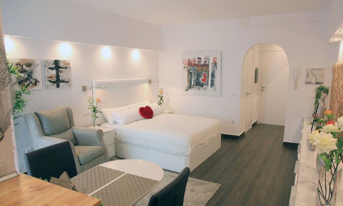 Profitez d'un séjour sans stress dans notre appartement 36 m2. Il a été entièrement rénové et accueillant avec un mobilier moderne, de bon goût et de haute qualité blanc, confortable une. Nous avons été très prudent que le confort de couchage maximale est atteinte. Le lit queen size avec élevée de haute qualité matelas en mousse à froid (comme Tempur) assure un sommeil réparateur et de détente de la vie quotidienne. Un fauteuil confortable complète le aménagement spacieux. Les chambres sont conçues avec bois tuiles de consultation de soins facile et font un contraste chaud à l'intérieur blanc.