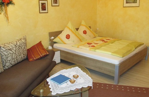 Secluded from noise and traffic, we offer you a cozy holiday apartment in a quiet residential area in Bamberg. It is located on the ground floor, is 32 m², suitable for 1- 2 persons and equipped with cable TV, radio with CD. It is lovingly furnished with combined living / bedroom with double bed, kitchenette, dining area, and bathroom with toilet and balcony.