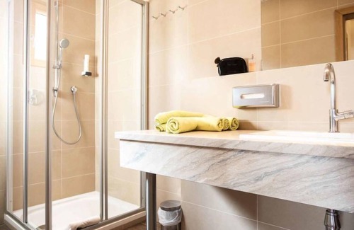 "Edith", 3-room apartment 66 m2, on the ground floor. Bright, beautiful and tasteful furnishings: living/sleeping room with 1 double sofabed, dining table and cable TV. Exit to the terrace. 1 double bedroom with TV (flat screen). 1 room with 2 beds and TV (flat screen). Open kitchen (oven, dishwasher, 4 ceramic glass hob hotplates, toaster, kettle, microwave, freezer, electric coffee machine). Shower, sep. WC. Underfloor heating. Parquet floors. Terrace, garden. Terrace furniture. Side panoramic view of the mountains. Facilities: baby cot, hair dryer. Internet (WiFi, free). Reserved parking (2 cars). 1 pet/ dog allowed. Indoor Pool, wellness area and the restaurant are at the hotel Hirschen (approx. 500 m).