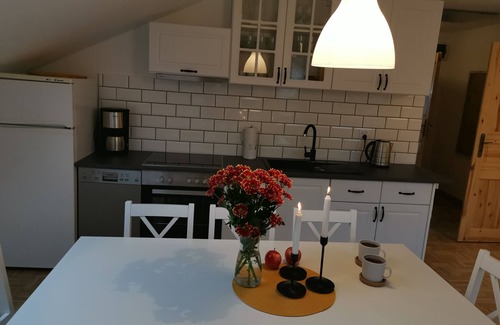 Cet appartement dispose d'un salon avec une télévision et d'une kitchenette avec un lave-vaisselle et un réfrigérateur, ainsi que d'une cuisine entièrement équipée. Sur demande, nous fournissons un lit de voyage et une chaise haute pour les enfants.