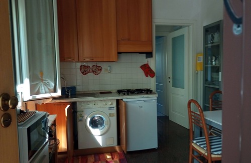 Appartement de deux pièces, situé dans une villa avec jardin privé, rez-de-chaussée, 4 lits. Consommation comprise, comprenant une chambre double avec un lit double et un lit simple, dans la cuisine un autre lit simple dans une page mobile pouvant être fermée pendant la journée. Cuisine équipée avec cuisinière à gaz 4 feux, réfrigérateur, lave-linge, micro-ondes, télévision, fer à repasser, sèche-cheveux. Salle de bain avec baignoire et douche. Chauffage en hiver avec chaudière au gaz naturel, radiateurs, moustiquaires et grilles de fenêtre. Jardin avec table et chaises, transats, barbecue à gaz à disposition des hôtes. Parkings publics près de la maison payants et gratuits. - Plage gratuite et installations de plage à quelques pas de la porte. Aussi boutiques, banque, bar, pizzeria