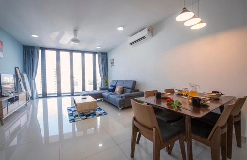 Boasting mountain views, Arte S @ 3 Bedrooms Holiday Apartment @ 3房式度假公寓 features accommodation with a balcony and a kettle, around 10 km from 1st Avenue Penang. The air-conditioned accommodation is 5.2 km from Queensbay Mall, and guests benefit from complimentary WiFi and private parking available on site. The apartment features 3 bedrooms, 2 bathrooms, bed linen, towels, a flat-screen TV with satellite channels, a dining area, a fully equipped kitchen, and a patio with city views. The apartment offers a children's playground. Guests can swim in the outdoor swimming pool, go hiking or relax in the garden. Penang Times Square is 10 km from Arte S @ 3 Bedrooms Holiday Apartment @ 3房式度假公寓, while Kek Lok Si is 10 km from the property. The nearest airport is Penang International, 10 km from the accommodation, and the property offers a paid airport shuttle service.
