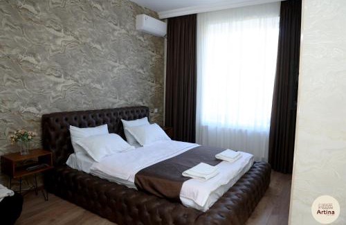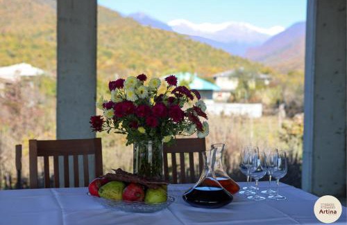 Situé à Art'ana, l’établissement Artina comprend un jardin, un salon commun, une terrasse et un bar. Il possède une cuisine commune et une aire de jeux pour enfants. Les hébergements offrent une vue sur la montagne et disposent de la climatisation, d’une armoire et d’une connexion Wi-Fi gratuite. Tous les hébergements proposent un patio offrant une vue sur le jardin. Des serviettes et du linge de lit sont fournis. L’établissement Artina sert un petit-déjeuner buffet ou continental. Cet établissement dispose d’un barbecue. Vous séjournerez à respectivement 20 km et 21 km de ces lieux d’intérêt : Cathédrale Saint-Georges d'Alaverdi et Citadelle de Gremi. L'aéroport le plus proche (Aéroport international de Tbilissi) est à 108 km.