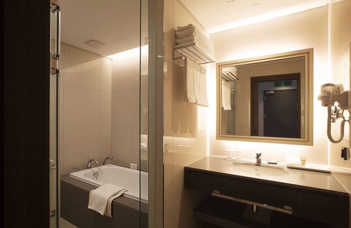 Asti Hotel Busan Station possède 360 chambres comprenant un coffre-fort et de l'eau minérale (offerte). Les lits sont dotés de matelas en mousse à mémoire de forme et sont préparés avec une couette en duvet d'oie et de la literie de qualité supérieure. Un réfrigérateur et une cafetière ou une bouilloire sont à votre disposition dans les chambres. Les salles de bain comprennent une douche, des peignoirs, des chaussons et un sèche-cheveux.