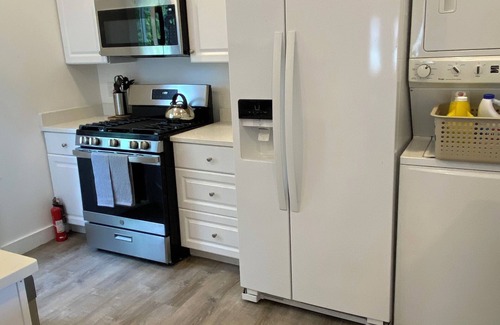 À votre arrivée dans cette location avec 3 chambres et 1 salle de bain, vous trouverez également un salon, un barbecue, la climatisation et un bureau. Parmi les équipements de salle de bains, vous trouverez un sèche-cheveux, des serviettes et du papier toilette. Dans la cuisine, vous trouverez un four, une plaque de cuisson et un réfrigérateur, mais aussi une cafetière, une bouilloire électrique et un distributeur de glaçons. Et vous pourrez même voyager un peu plus léger, car le logement est équipé d'une machine à laver et d'un sèche-linge.
