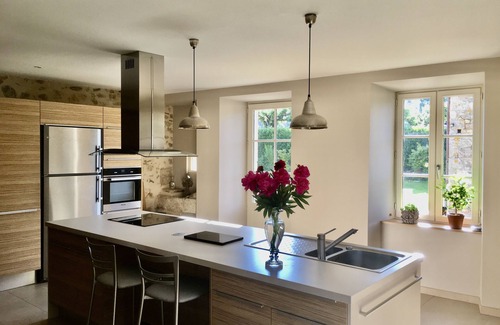 Rénovation très récente, au cœur d'un joli village d'un coté et belle vue sur la nature, de l'autre coté. La maison donne sur un terrain privé de 1 hectare, elle associe le charme de l'ancien et les matériaux modernes de belle qualité, décoration très soignée. Les pièces sont spacieuses et lumineuses et de grand confort : cuisine salle à manger 40 m2, salon 40 m2, 4 chambres et un bureau (pouvant servir aussi de 5 ème chambre), 2 salles de bain et une salle d'eau,1 lingerie, 2 wc séparés. La piscine au sel est chauffée.