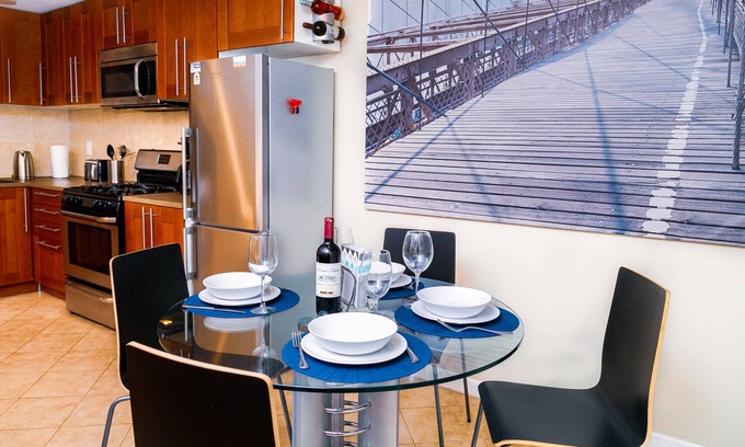Les meilleurs tarifs pour Brooklyn appartement commencent à partir de $135 par nuit et comprennen Blanchisserie, Climatiseur, La télé, Literie/Linge de maison, Adapté aux enfants, Cuisine avec toutes les autres installations. MLFR correspond à chaque voyageur avec son hébergement parfait, que vous voyagiez avec un groupe, des amis, une famille ou des animaux de compagnie.