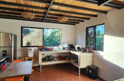 Avec ses activités proposées sur place (vélos, entre autres), ce chalet non-fumeurs a décidément tout pour vous plaire. Sautez dans votre voiture et effectuez le trajet de 44 minutes jusqu'à Parc national Carara ou de 57 minutes jusqu'à Plage de Puntarenas (et quand vous n'êtes pas sur les routes, profitez du parking mis à disposition par l'hébergement).