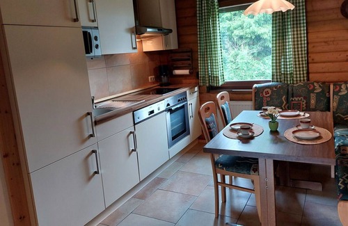 3-room apartment 75 m2, on the upper floor. Cosy and wooden furniture furnishings: living room 35 m2 with satellite TV (flat screen), hi-fi system. Exit to the balcony. 1 room 13 m2 with 1 double bed (180 cm, length 200 cm). 1 room 9 m2 with 2 beds (90 cm, length 200 cm). Open kitchen 9 m2 (oven, dishwasher, 4 ceramic glass hob hotplates, toaster, kettle, microwave, electric coffee machine) with dining nook. Shower/WC. Gas heating. Large balcony 20 m2, patio, lawn 100 m2. Balcony furniture, barbecue, deck chairs (2). Beautiful view of the mountains. Facilities: washing machine, iron, children's high chair. Internet (WiFi, free). Please note: non-smokers only. Maximum 2 pets/ dogs allowed. Private entrance, smoke alarm. Balcony partly covered. Lake 50 m.