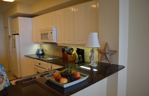 Le grand salon / salle à manger combiné a des plafonds de 9 'et offre une vue sur la plage à travers les fenêtres du sol au plafond et les portes coulissantes en verre. Un grand salon est fourni sur un canapé-lit queen, un canapé 2 places et des chaises supplémentaires. Cette zone offre beaucoup d'espace pour lire, se détendre, regarder la plage ou regarder la télévision connectée HD 55 pouces avec lecteur DVD Blu-ray. La salle à manger offre des sièges confortables et spacieux pour 8 personnes. La grande table à manger a été spécialement créée par «The Beach House» à Gulf Breeze, FL. La cuisine moderne avec des comptoirs en granit et des dosserets en marbre est bien conçue et équipée pour la cuisine gastronomique. Recevoir est un plaisir sur le plus grand balcon de la plage de Navarre (267 pieds carrés). Il peut accueillir 6-8 personnes avec une table et des chaises, et des meubles en osier confortables.