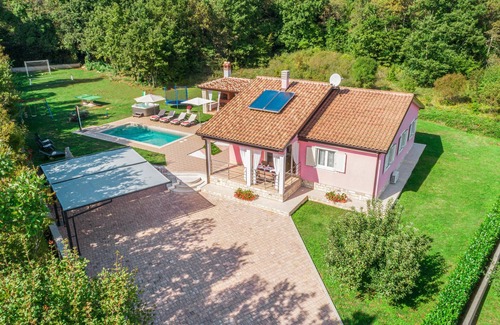 Cette magnifique maison de vacances avec sa propre piscine se trouve dans un village istrien avec d'autres maisons individuelles et est idéale pour des vacances en famille. L'aménagement est moderne et offre un confort standard. Vous disposez de 3 salles de bains, de 3 chambres à coucher et d'une grande cuisine-salon. Vos enfants peuvent jouer librement dans le jardin, tandis que vous vous rafraîchissez dans la piscine ou profitez de vos vacances sur l'une des terrasses. Vous pourrez terminer la journée en toute convivialité avec vos proches autour d'un barbecue. Visitez la ville de Rabac avec les plus belles plages d'Istrie ou la vieille ville de Labin, connue pour être une ville d'artistes. Flânez dans le village et laissez-vous enchanter par les nombreuses galeries. L'amphithéâtre, appelé 'Arena', est également un point d'attraction pour les touristes, tout comme les îles Brijuni et bien plus encore.
