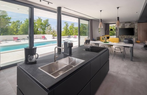 Vivez des vacances inoubliables dans le nord de l'Istrie dans cette belle et confortable maison de vacances. Sur deux étages spacieux, un beau design sélectionné et des meubles de qualité vous promettent détente et divertissement. Profitez de votre intimité dans les grandes chambres à coucher avec salles de bains attenantes ou réjouissez-vous de la compagnie de vos proches dans le salon aéré. Cuisinez de bons petits plats dans la cuisine moderne et dînez ensemble avec vue sur la piscine.