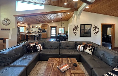 Belle maison de quatre chambres en stuc, deux salles de bain situées sur plus d'un acre de propriété. Beaucoup de stationnement pour toutes vos jeeps, remorques, motos tout-terrain et véhicules. Belle vue sur les montagnes de La Sal depuis les fenêtres avant et les falaises de roches rouges de Moab Rim de l'arrière. Ce n'est pas votre location Moab standard - qui sont principalement des condos - vous aurez de la place pour vous étendre ici! Il y a aussi une grande zone clôturée pour la vie en plein air.