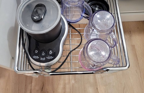 The newly renovated kitchen has all the utensils and appliances you need and many modern features to keep the quartz counter top uncluttered and easy access to all what you need.