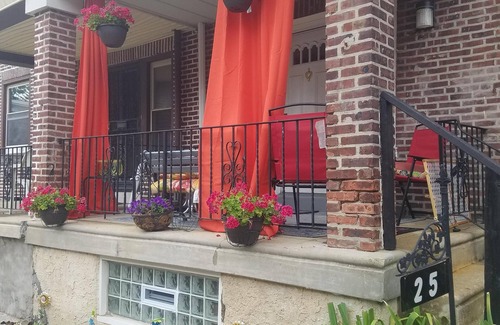 Toute la maison des années 1920 ainsi que cette charmante suite séparée de studio avec sous-sol avec poutres apparentes au plafond, pouvant accueillir 4 personnes. Un nouveau lit queen size et un nouveau canapé-lit, avec entrée privée d'environ 600 pieds carrés situés à 1/2 pâté de maisons des transports en commun, mini-épicerie et fournitures à 1/2 pâté de maisons. Propriété située dans le quartier historique de Germantown, Wissahickon Valley Trail, près de la statue de Rocky, zoo de Philadelphie, rangée de Boat House, Sesame Place, Pat's, Gino's cheese steak, King of Prussia Mall.